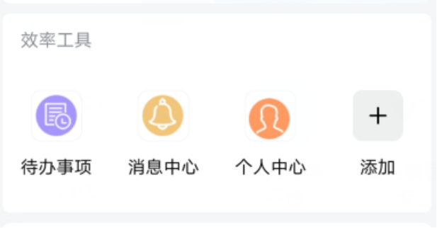 2.1效率工具,包括消息中心、待办事项、个人中心等应用。