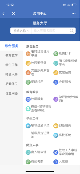 2.3服务大厅,应用服务统一访问入口,可以根据分类快捷访问相关应用,也可以通过搜索功能查找相关应用。