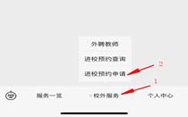 1. 打开微信,关注重电智慧校园公众号,点击下方菜单栏,校外服务---进校预约申请。