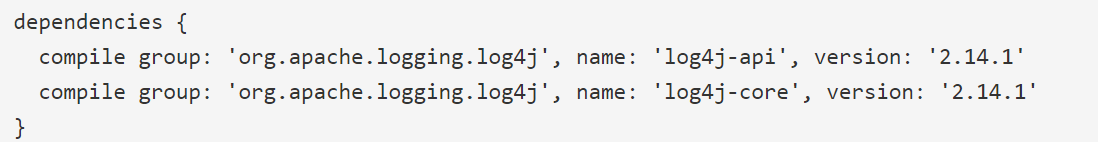 (3)若程序使用Gradle打包,可查看build.gradle编译配置文件,查看中org.apache.logging.log4j相关字段及版本情况。