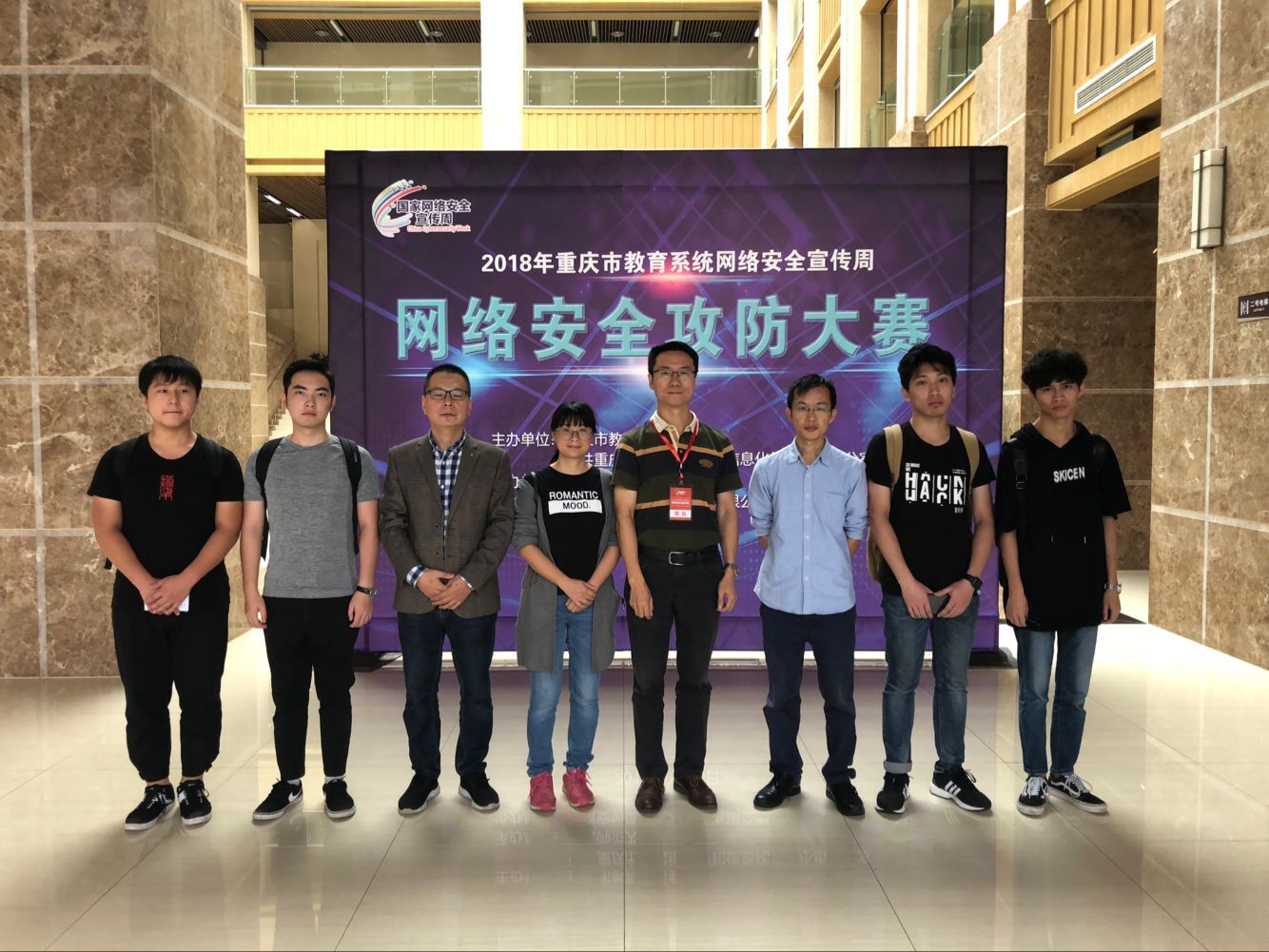 9月18日是2018年国家网络安全宣传周校园日,由重庆市教育委员会、中共重庆市委网络安全和信息化领导小组办公室主办,重庆师范大学承办的“2018年重庆市教育系统网络安全宣传周——网络安全攻防大赛” 决赛在重庆师范大学大学城校区成功举行。市委教育工委委员、市教委副主任、市教委网络安全和信息化领导小组副组长刘宴兵,市委宣传部副巡视员李进涛,市公安局网安总队副支队长李涛,重庆师范大学副校长杨新民,市教委科技处处长蒋云芳等领导出席大赛颁奖活动。