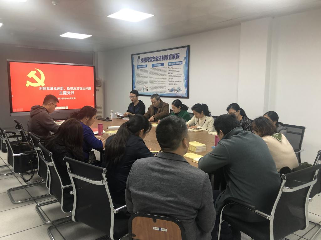 2019年11月7日下午,图文信息中心党支部在7-107A党员学习室举行“对照党章找差距,检视反思突出问题”的主题党日活动。