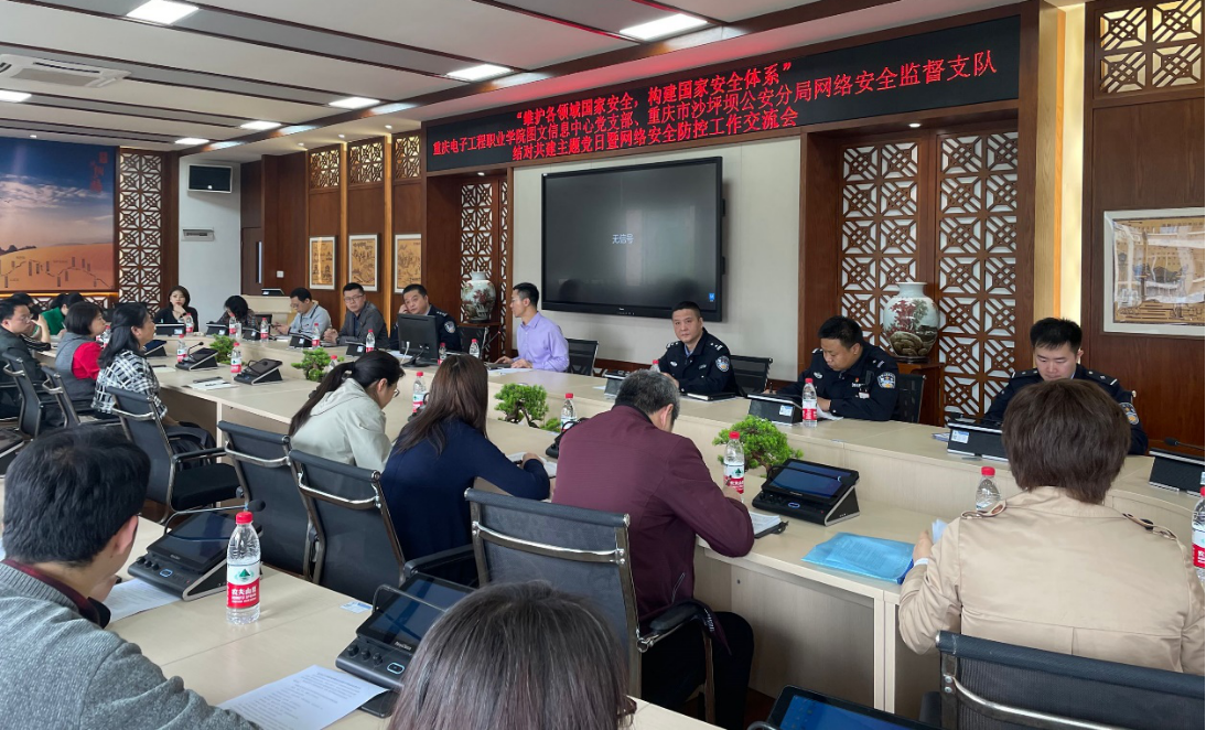 4月21日下午14:30,学校图文信息中心党支部与沙坪坝区公安分局网络安全保卫支队结对共建主题党日暨网络安全防控工作交流会在学校丝路国际会议室召开。沙坪坝区网络安全保卫大队副支队长革逊、民警沈溟浩、杨子良、辅警刘子豪,学校图文信息中心党支部全体党员、各部门信息化联络员参加了会议,图文信息中心党支部书记、网络安全与信息化办公室主任朱强主持本次交流会。