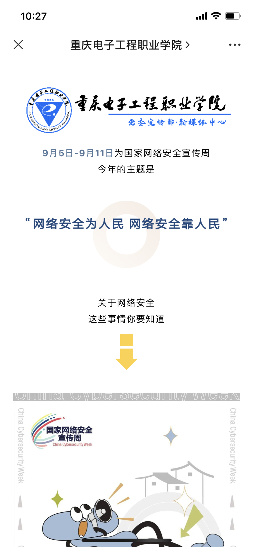 重庆电子工程职业学院一直重视网络安全及网络安全教育,深知网络安全关系到国家安全、经济社会稳定和群众幸福,是国家安全在网络空间中的具体体现。通过此次宣传周活动,增强了师生网络安全意识,提升了师生网络安全素养,对学校进一步做好网络安全工作起到了有效促进作用。