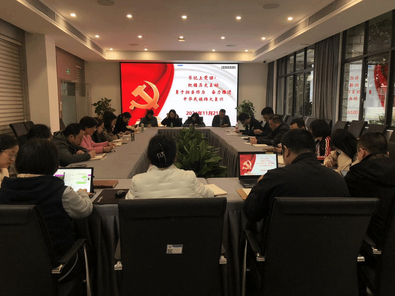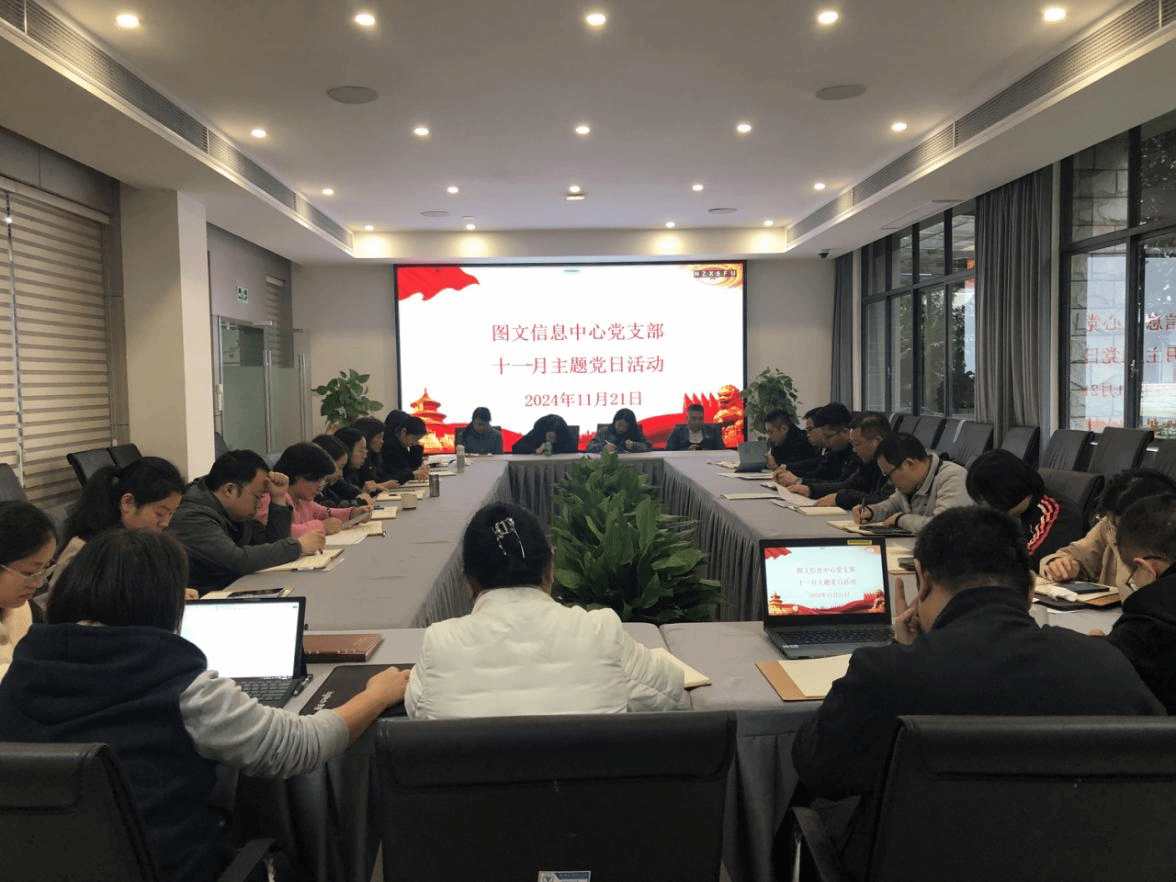 11月21日下午,图文信息中心党支部在知行楼B103会议室开展主题为“铭记历史初心 共绘时代蓝图”的11月主题党日活动。此次活动由图文信息中心党支部书记李林同志主持,支部全体党员参加了此次学习。