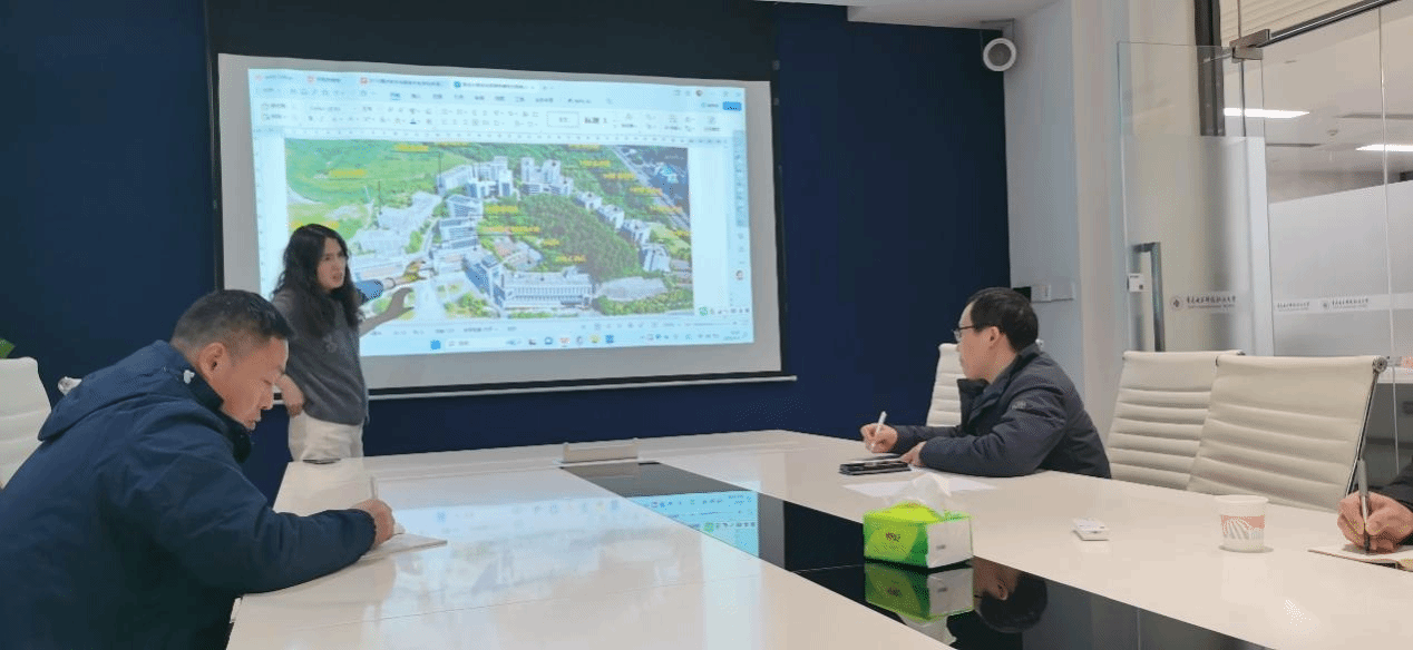 现场沟通协调会上,两江办张慧敏副主任对两江校区最新规划做详细解读,陈忠副处长就两江校区建筑结构功能建设最新更新内容做详细介绍。根据最新规划及校舍建筑功能变化,图文信息中心现场与教务、后勤、人工智能与大数据学院、继续教育与培训学院等多部门对进行了深度交流,为加快后续两江校区数字化规划与建设提供了基础支撑资料。