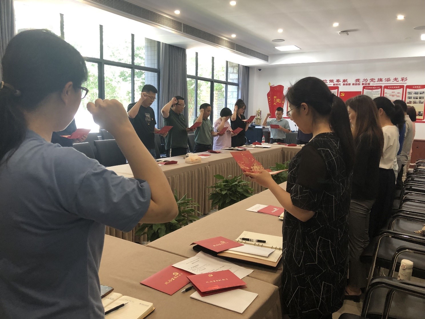 会议开始,全体党员集体过“政治生日”,党支部书记李林同志带领全体党员重温入党誓词。党员同志们在铿锵有力的宣誓中回望初心,再一次体会到作为一名共产党员的责任感和使命感。