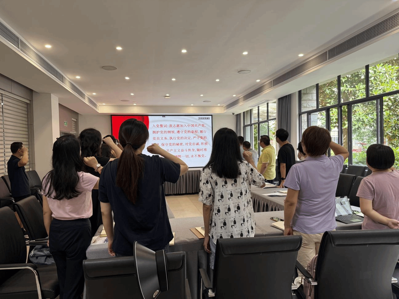 会议开始,全体党员集体过“政治生日”,党支部书记李林同志带领全体党员重温入党誓词,表达对党的深厚感情和为共产主义事业奋斗终身的决心。