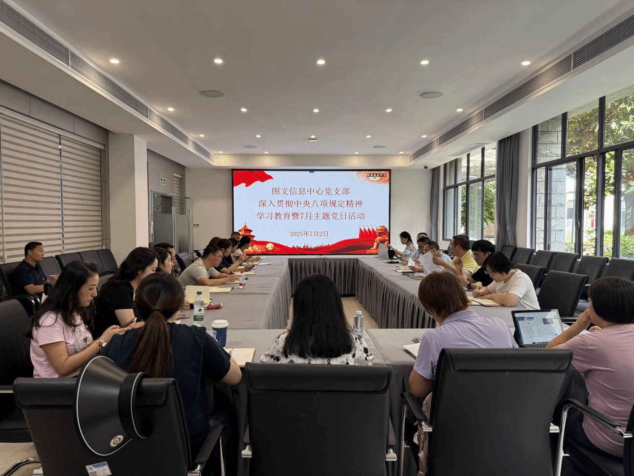 7月2日上午,图文信息中心党支部在知行楼B103会议室开展深入贯彻中央八项规定精神学习教育暨“回顾党的历程 激发奋斗热情”主题党日活动。此次活动由图文信息中心党支部书记李林同志主持,全体党员参加。